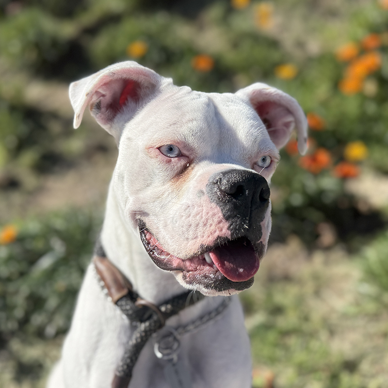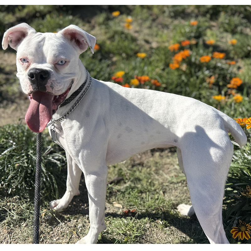 Nollie is a 1 year old precocious and active young girl that is looking for a new home. She was named for a skateboard trick, where you pop the nose of your board off the ground to jump. Boxer Nollie loves to pop off the ground as well. She is learning to jump up on people less.  She is very smart and extremely treat driven so loves to learn new things. She has already learned basic commands like sit, down and stay.  She is housebroken and crate trained.   She is looking for a new home due to her  jealousy and possessiveness of humans with the other dogs she resides with.  She has taken to starting a scrap when there is a person involved.  She is great with other dogs out in the world so can have lots of friend to play with. A home where she can be the only dog will provide her with time to develop more balance and learn to share.  She had the opportunity to go everywhere with her owner so was never left alone.  Nollie loves to play, with toys, with people and even on her own. A home where someone is home more than not can take the time to acclimate her to a home life where she feels safe on her own at home.  She was mostly exercised off leash at parks and beaches but does really well on leash now.  She loves people (sometimes too much :) so is a dog you can take to public places and enjoy lots of activities together.