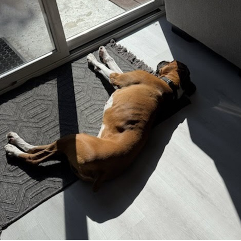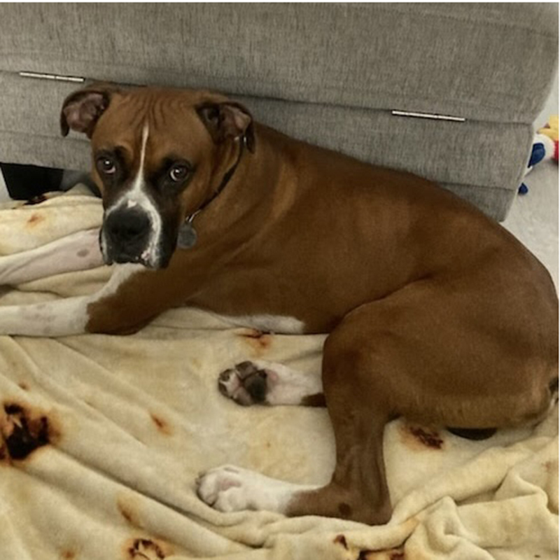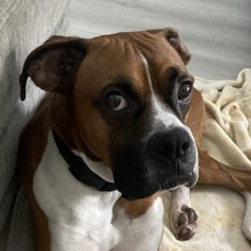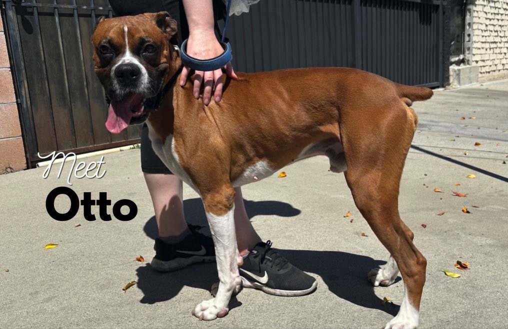 Otto is a handsome 4 year old boy that came from the Ontario animal shelter. He went into a shelter sponsored foster home where he did fine for a week. Then he came to BRLA. Otto needs a strong leader as he can be selective with what may cause him to react. He walks with many Boxers at BRLA but can be selective with new dogs he meets. He greets volunteers nicely and passes some strangers without blinking an eye, but there can be something about someone he sees that causes concern and possible reactivity. His behavior is manageable and in the right home can be improved as he is a very good boy in the right environment. Otto has a very high prey drive. He can spot a cat when out on a walk and small animals like squirrels are a challenge as well. Definitely no cats at home please. He also has not learned to share and has demonstrated resource guarding with other animals and with people which will take training to lessen. Otto should go to an adult only home. Otto will do best with someone who loves to train with their Boxer and has the confidence he lacks. Also being able to provide lots of exercise, like a runner, will help release endorphins and create more focus, more exposure and less reactivity. With dedication and some work, Otto will become an good companion dog. We think being the only dog in the home will give him the focus to build confidence in the outside world. He does bark for attention and when alone. Otto is ready to blossom into the dog you make him at home when you put in the work he needs.
